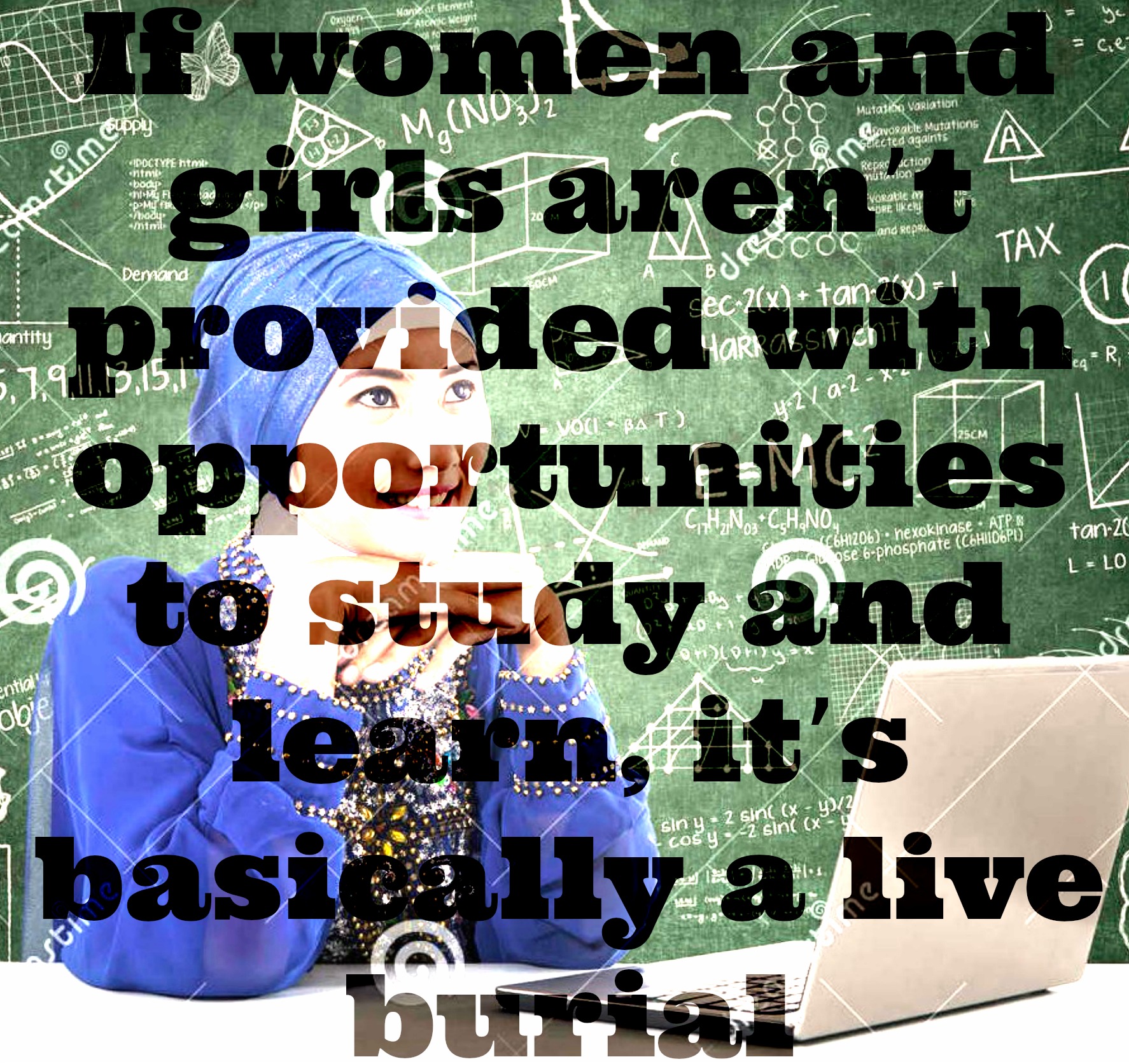 There is a saying that many repeat, but some do not apply in their lives, communities, or countries. Educate a women, educate a nation. This saying became very dear to me. It became my mantra. It became the soothing balm when I turned to religious knowledge to fight this denial of education to women.